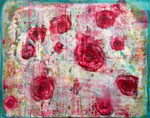 Ten obraz namalowałam z potrzeby zatrzymania ulotnych wspomnień i emocji, które niosą ze sobą zapachy. Róże - niedosłowne, zanurzone w warstwowej, fakturalnej strukturze - symbolizują dla mnie to, co delikatne, ale silnie zapisane w pamięci. Tło zbudowałam z pastelowych odcieni turkusu, zieleni, bieli i różu, by stworzyć wrażenie rozmytego wspomnienia, które mimo upływu czasu nadal tętni kolorem i energią.
