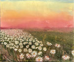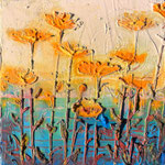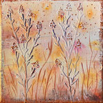 Ten obraz to moja interpretacja późnoletniego pola kwiatów - takiego, które mieni się złotem, pomarańczem i czerwienią, jakby łapało ostatnie promienie słońca.