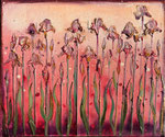 Obraz powstał z ogromnej potrzeby koloru i miękkości. Chciałam, żeby patrząc na te irysy, można było poczuć się tak, jakby się stało w cichym ogrodzie tuż przed zachodem słońca - wszystko jest jeszcze pełne życia, ale światło już robi się różowo - złote, tak jakby wszystko miało się zaraz otulić snem.
