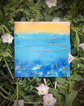 Ten obraz powstał z potrzeby ciszy i lekkości. Chciałam, żeby był jak oddech- głęboki, świeży, jak o poranku nad wodą, kiedy wszystko dopiero się budzi. Tło jest chłodne ale nie zimne - to delikatne błękity i mięta, które uspakajają i koją.